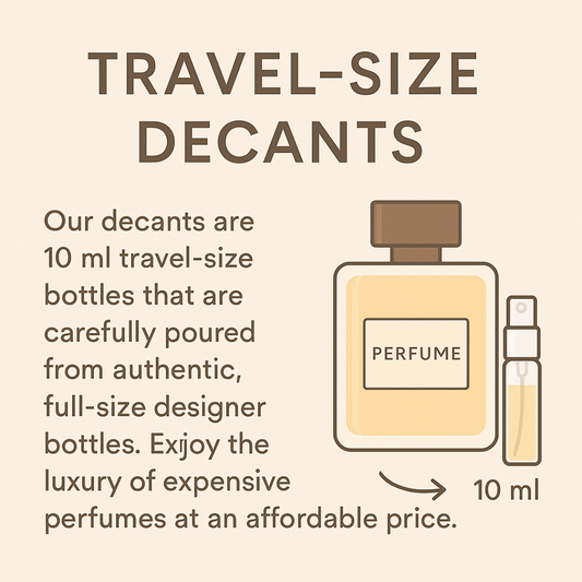 Discover your favorite designer fragrances in convenient travel-size bottles. Each decant is carefully hand-poured from 100% authentic perfumes into a 10ml atomizer, perfect for sampling, travel, or everyday wear. Bottles may vary in color based on availability, but every decant is freshly prepared to order to ensure the highest quality.